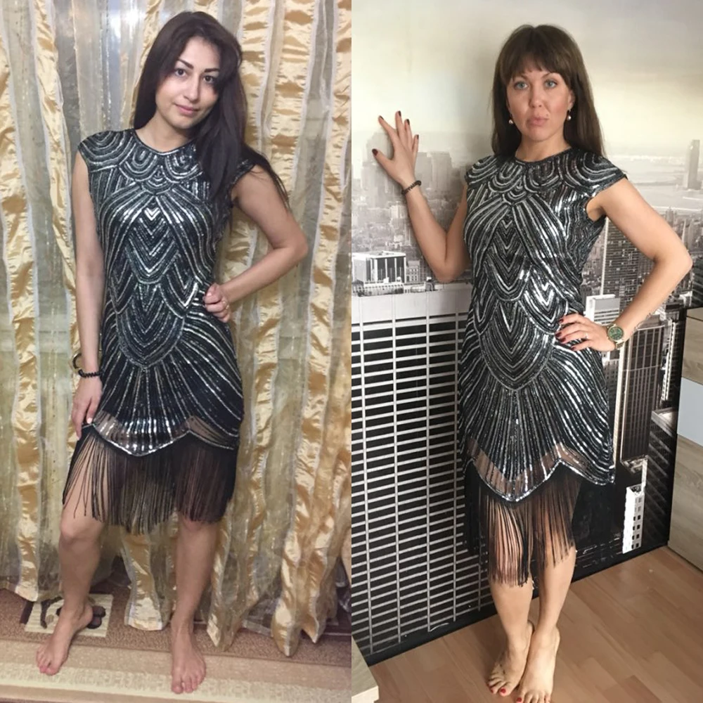 1920s Flapper Great Gatsby O-Neck Cap Sleeve Sequin Fringe Party Midi Dress Vestido De Verano Summer Women Dress