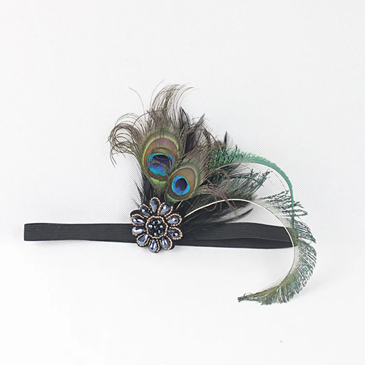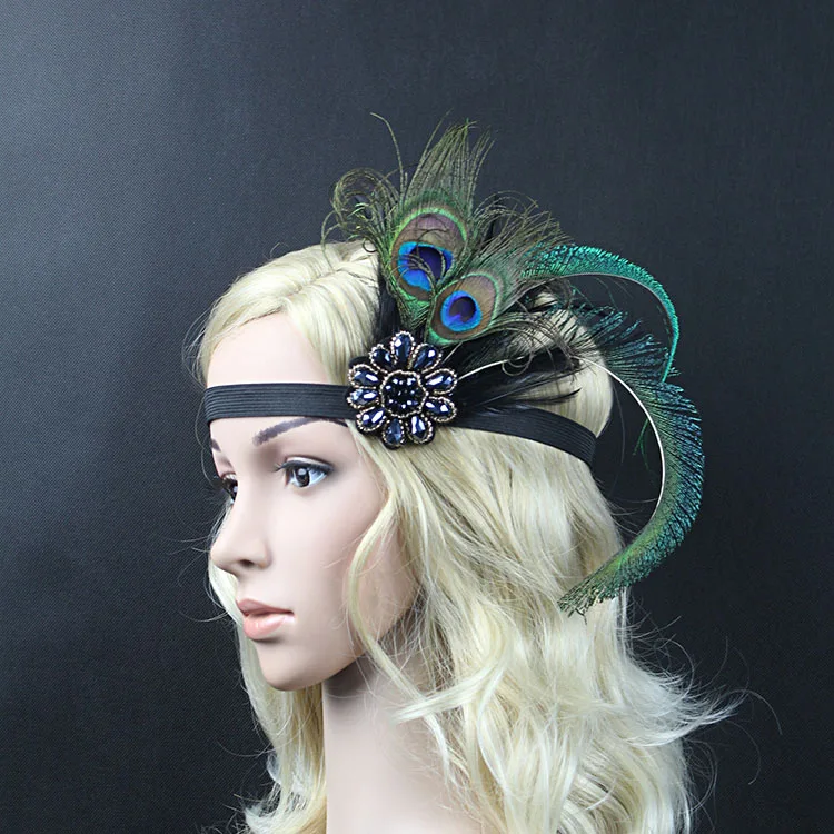 1920s Peacock Feather Headpiece Flapper Accessories Women Art Deco 20s Great Gatsby Showgirl Headband Costume Party Hairband