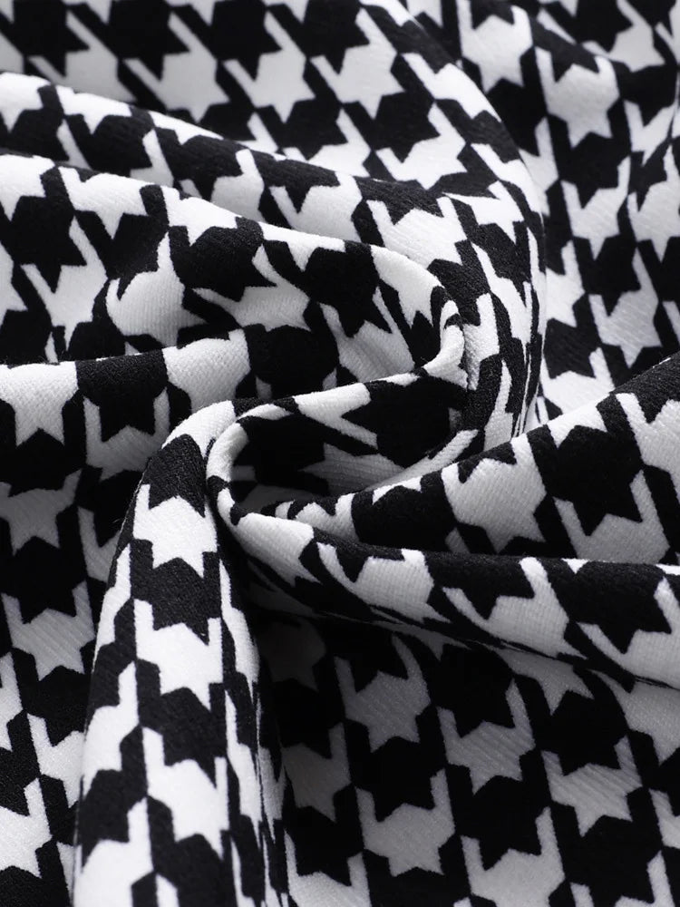 High Waist Houndstooth Plaid 50s Vintage Fashion Pleated Skirt Women Autumn Winter Knee Length Retro Skirts