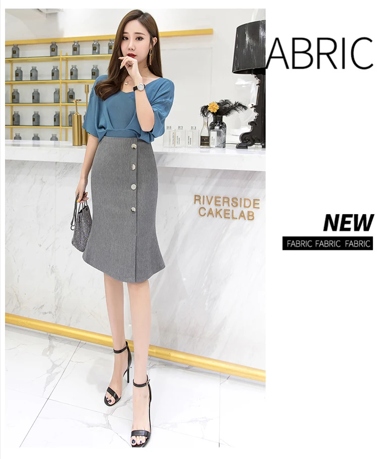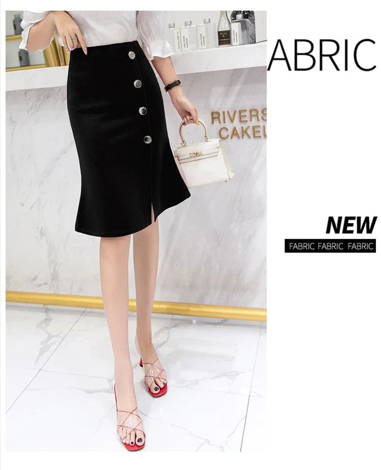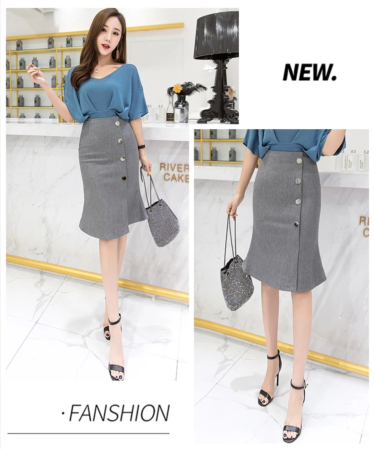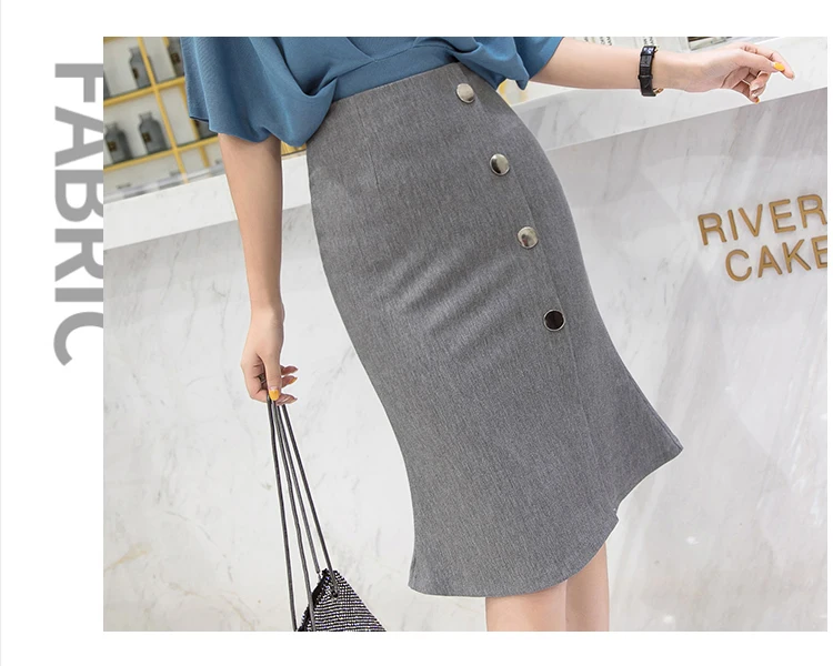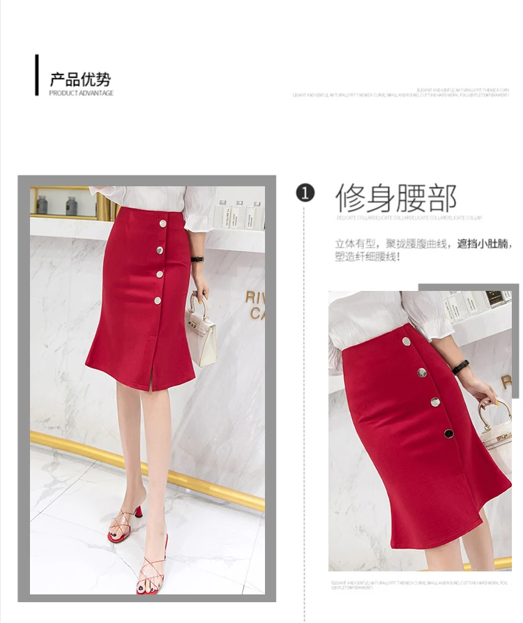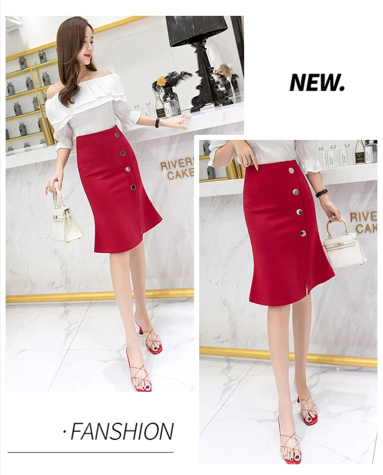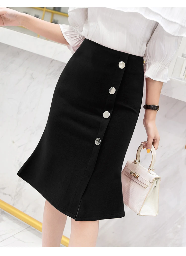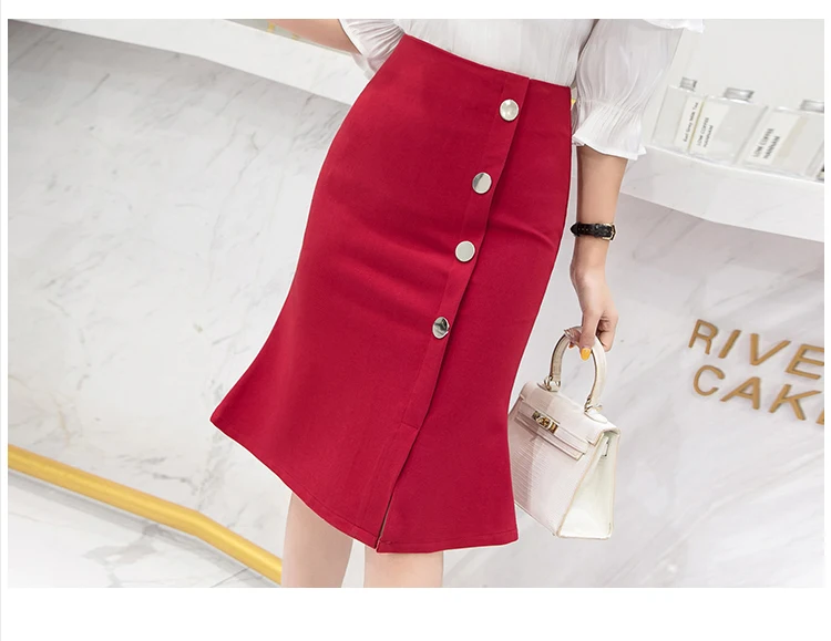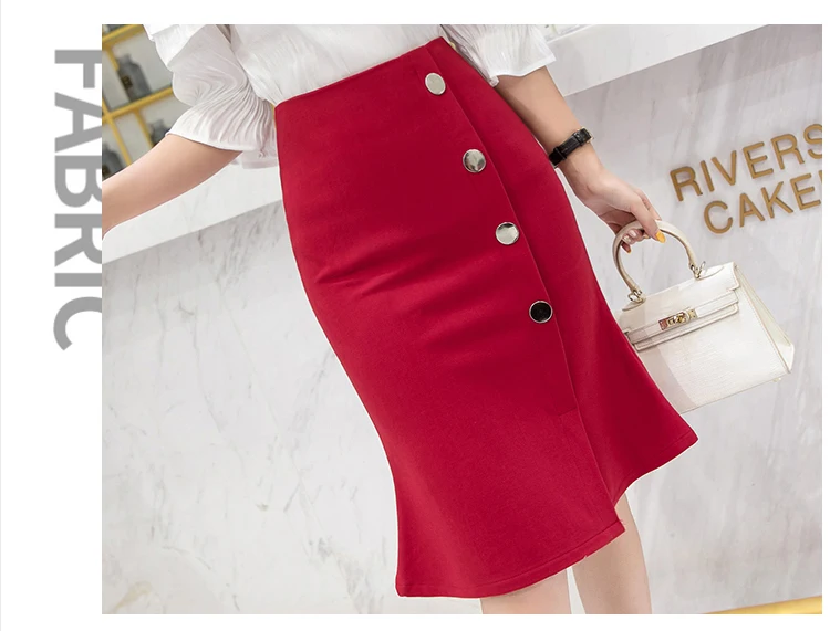 Ladies Elegant Mermaid Spring Office Style Single-breasted High Waist Knee-length Women Skirt