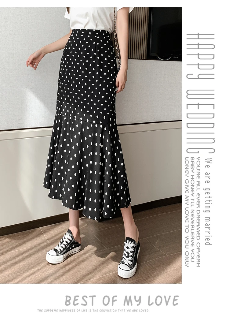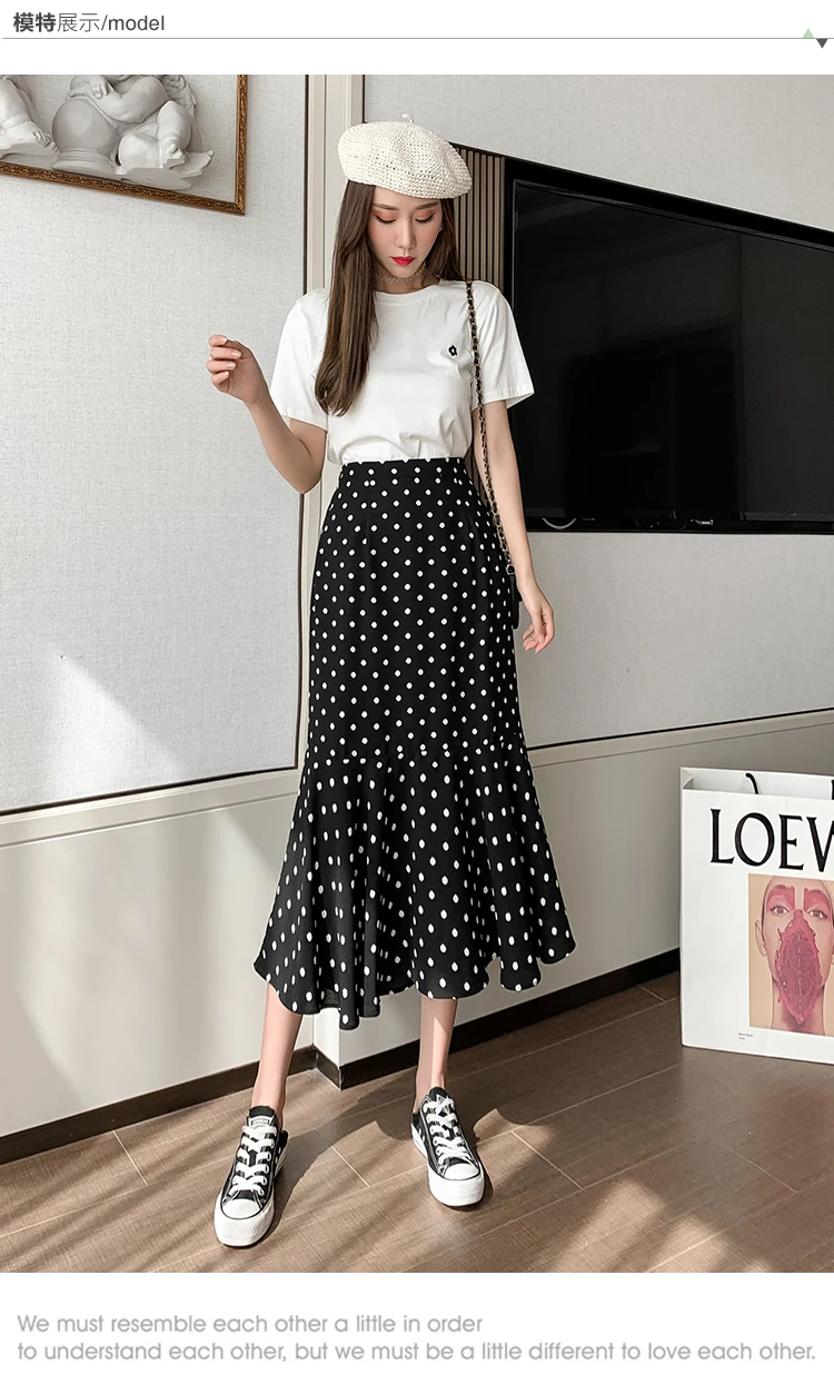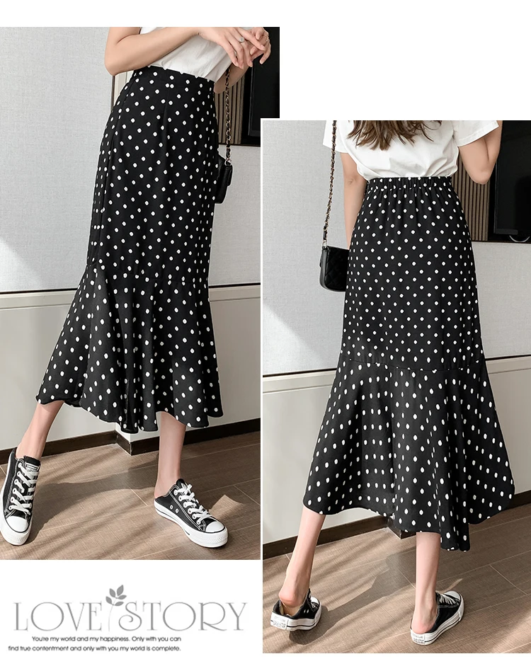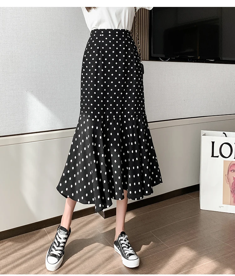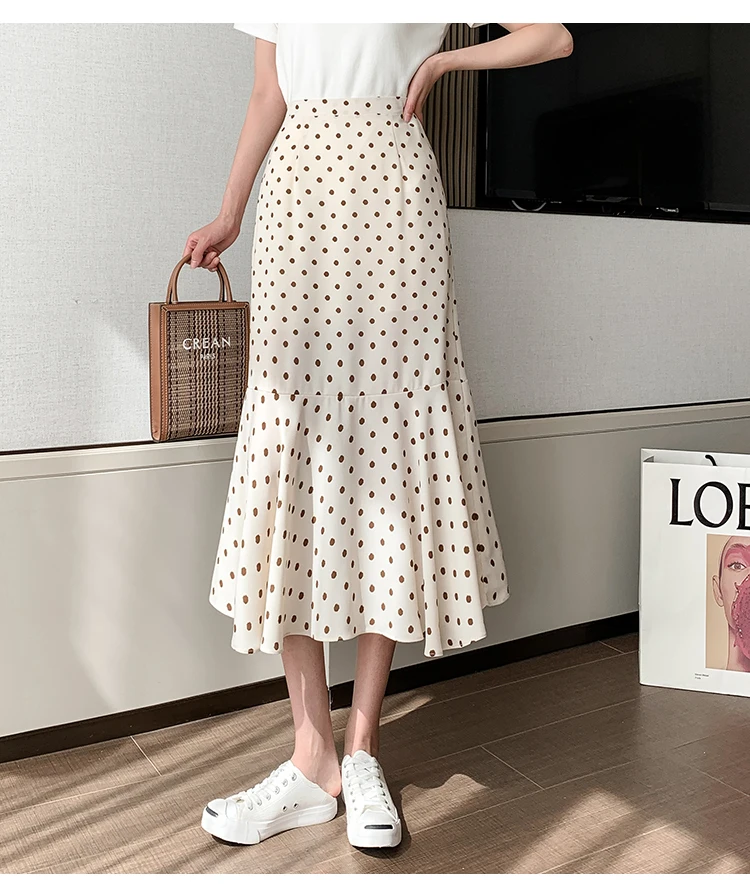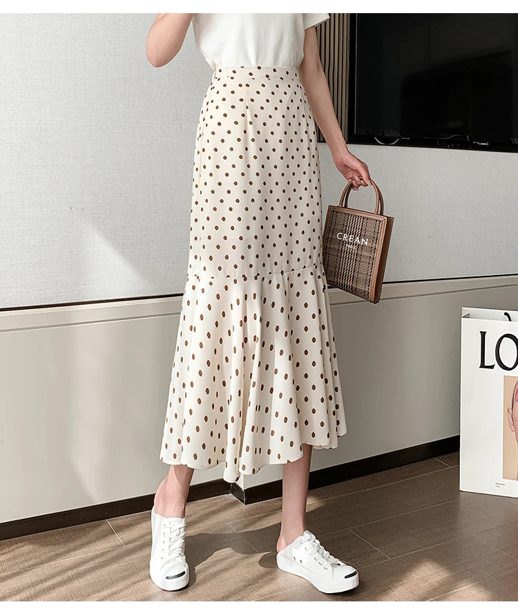Women Chiffon Casual Spring Korean Style All-match Polka Dots Loose Ladies Elegant A-line Mermaid Skirt