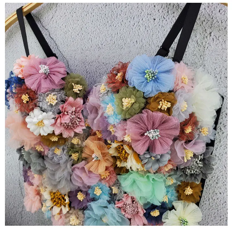 Women Casual Sweet Tank Floral Patchwork Cropped Tops Sexy Vest Elegant Camisole Breast Wrap