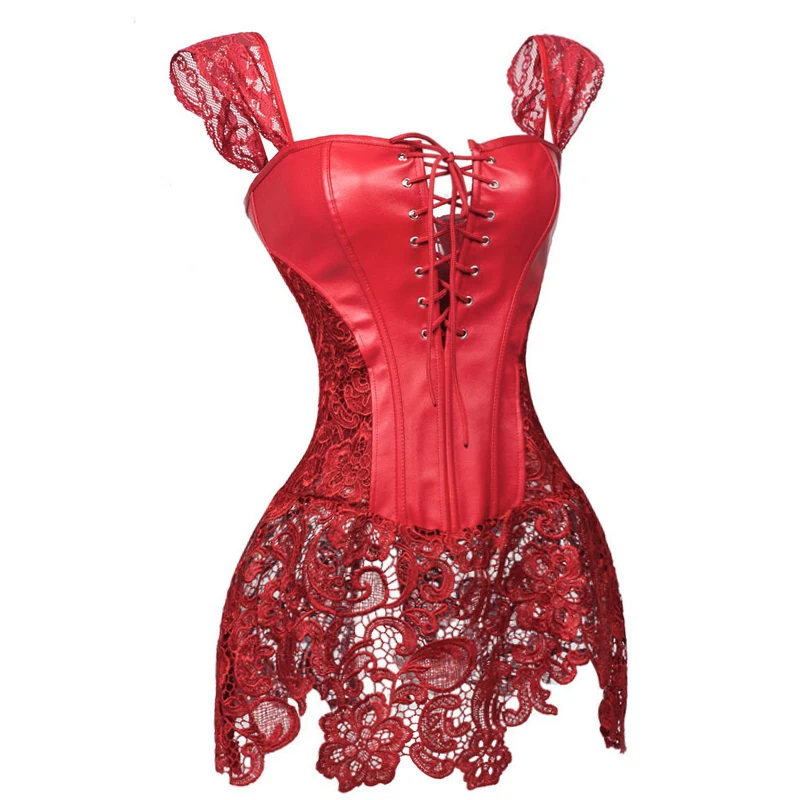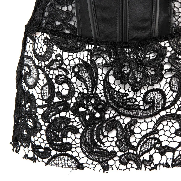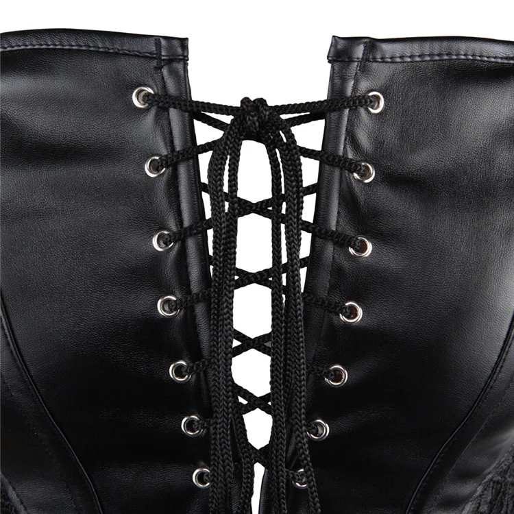 Faux Leather Black Steampunk Zipper Back Corsets and Bustiers PVC Gothic Boned Lingerie Slimming Body Shaper