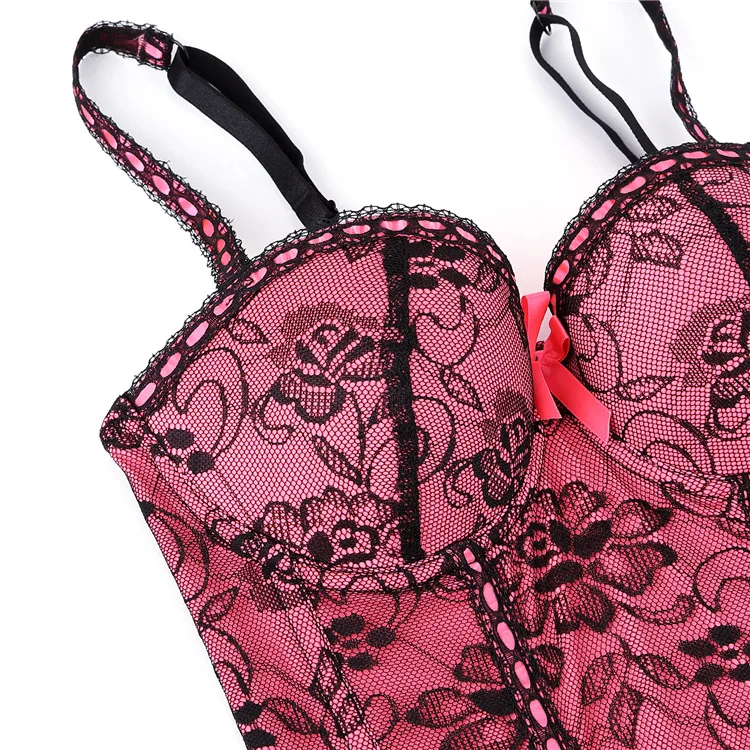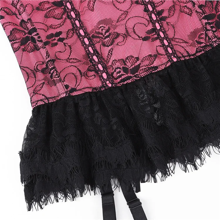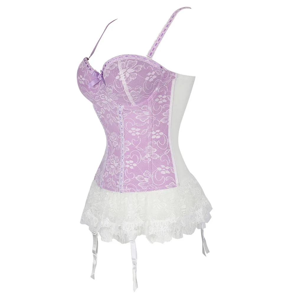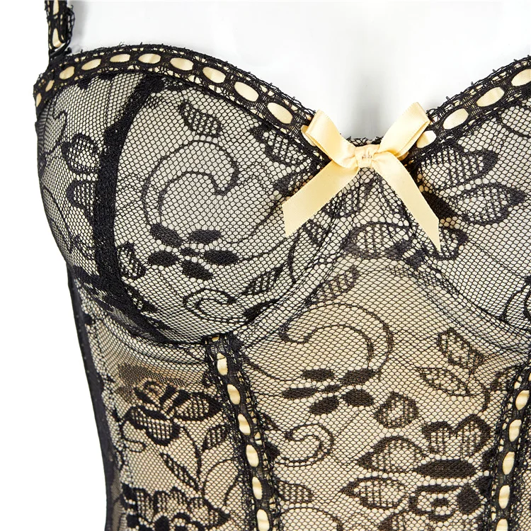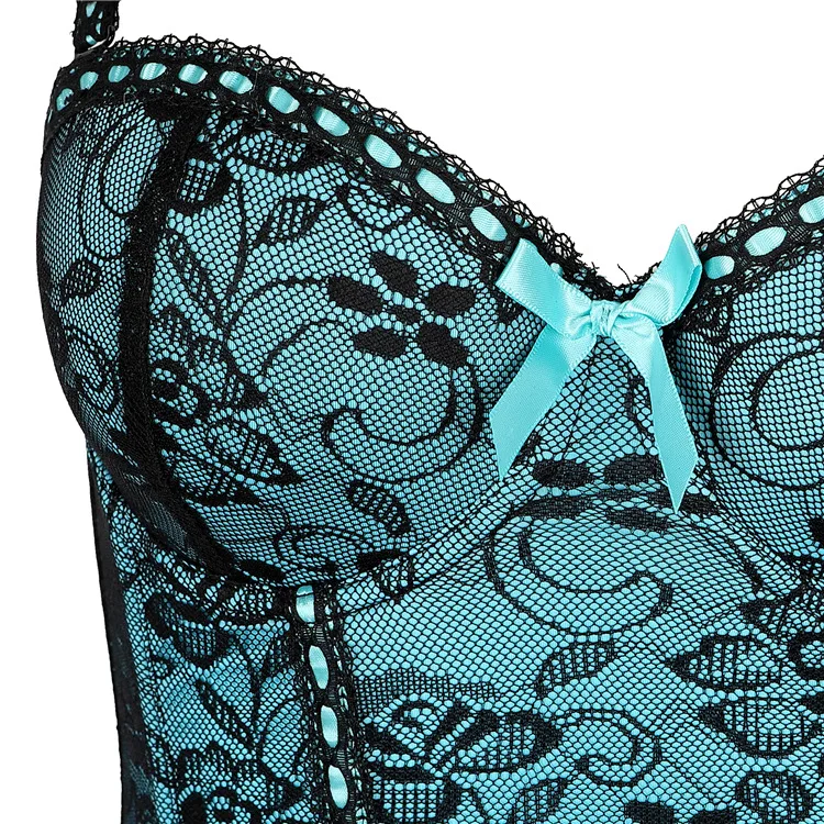 Floral Print Lace Mesh Spaghetti Straps Boned Overbust Bustier Waist Cincher Corset Bra Top Lingerie Party Dress