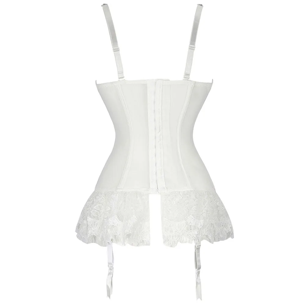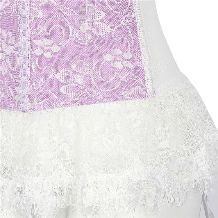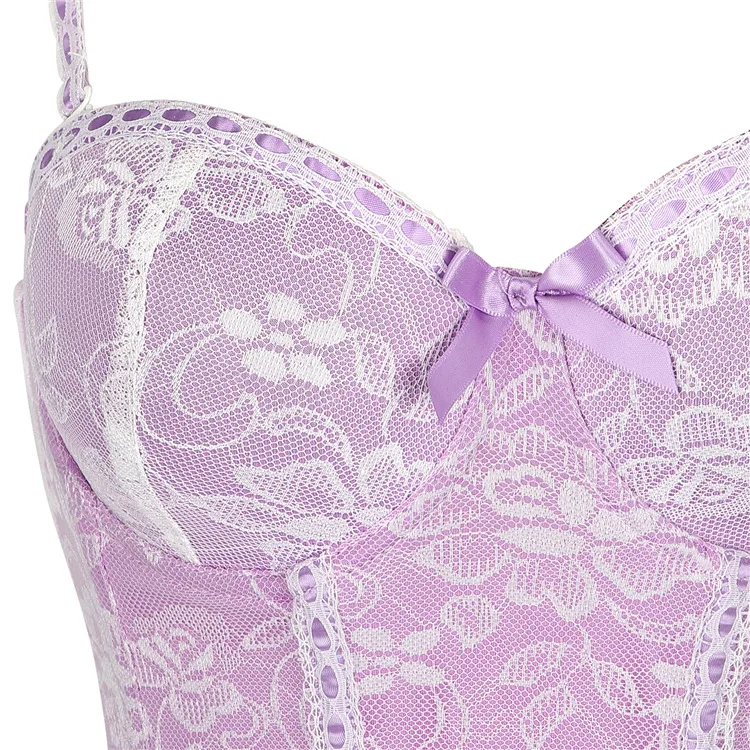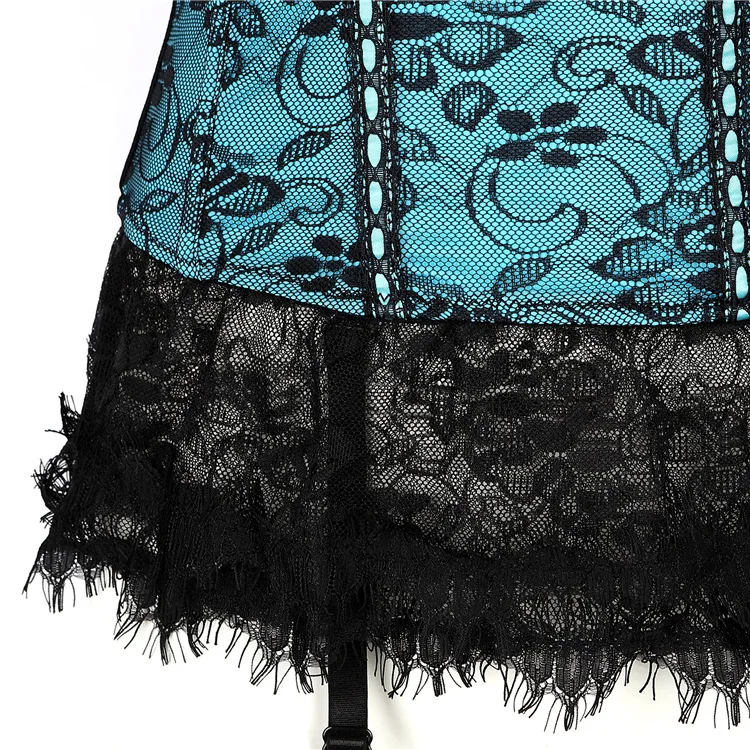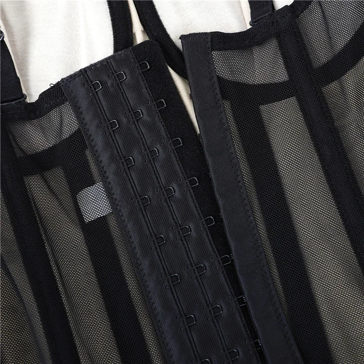 Floral Print Lace Mesh Spaghetti Straps Boned Overbust Bustier Waist Cincher Corset Bra Top Lingerie Party Dress