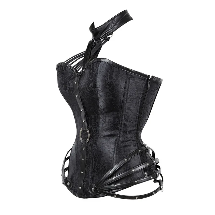 Gothic Spiral Steel Boned Waist Trainer Halter Corsets Bustier Body Overbust Top Steampunk Lingerie Body Shaper