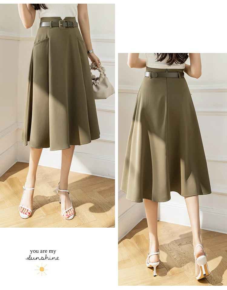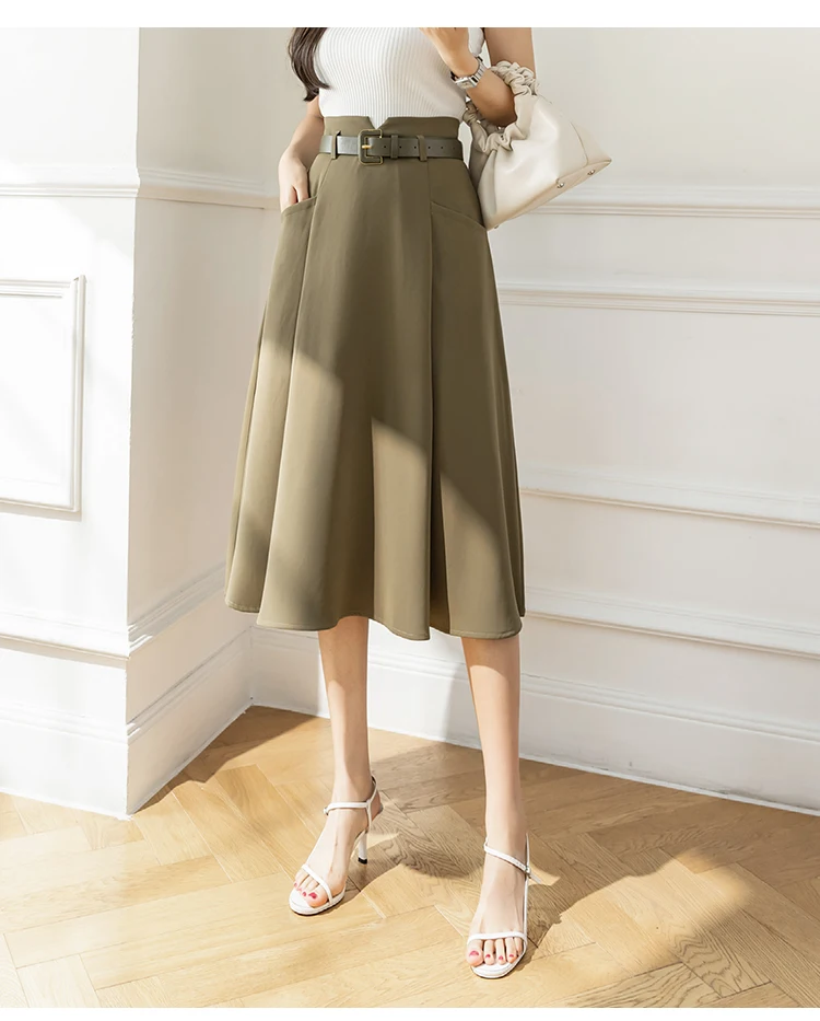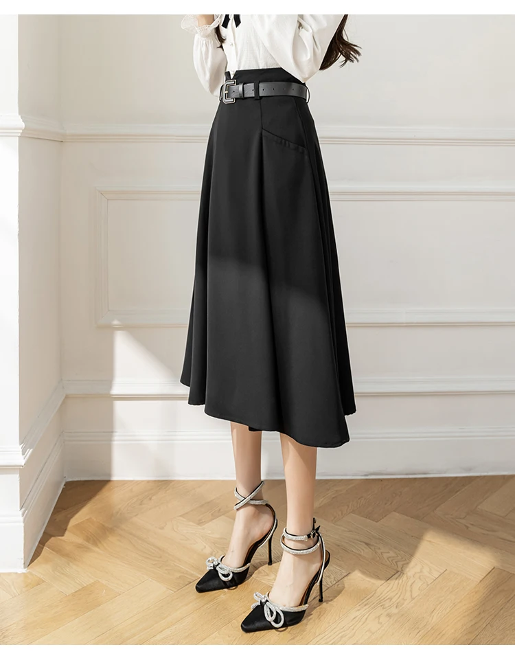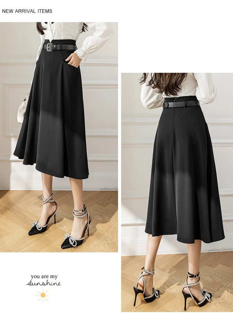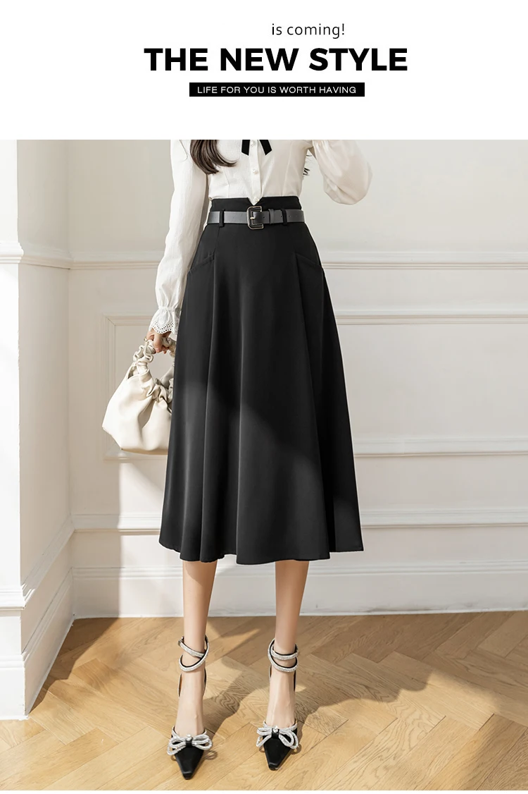 High Waist Long Women Spring Korean Style Big Swing All-match Office Lady Elegant A-line Skirt