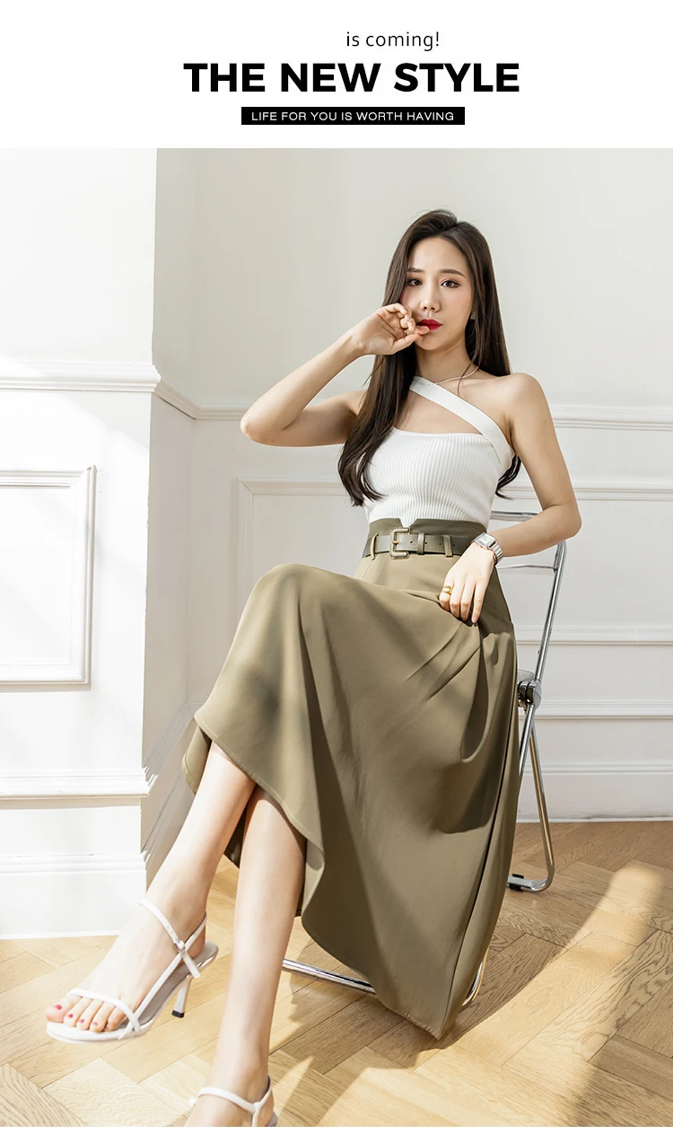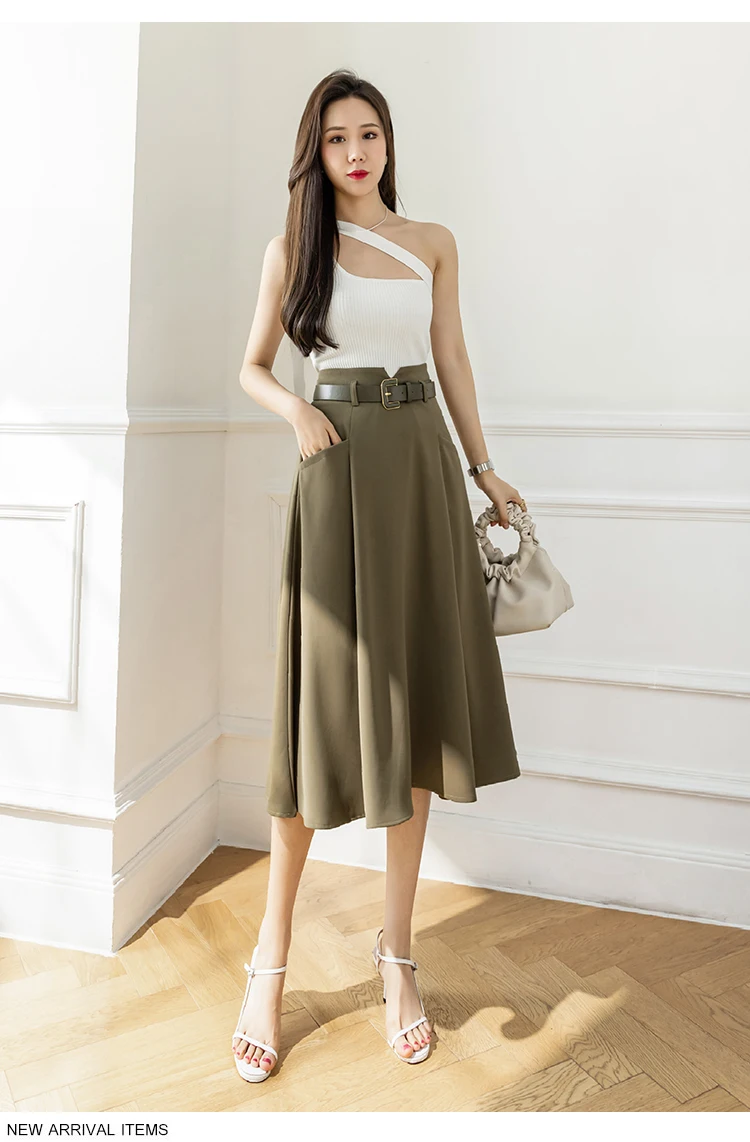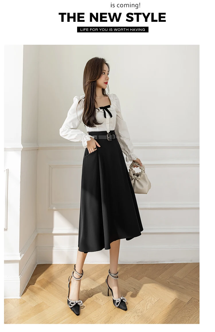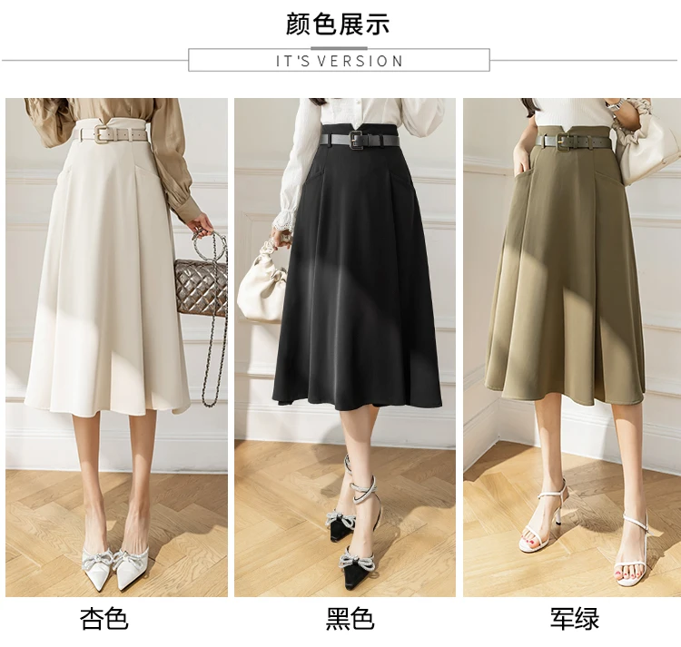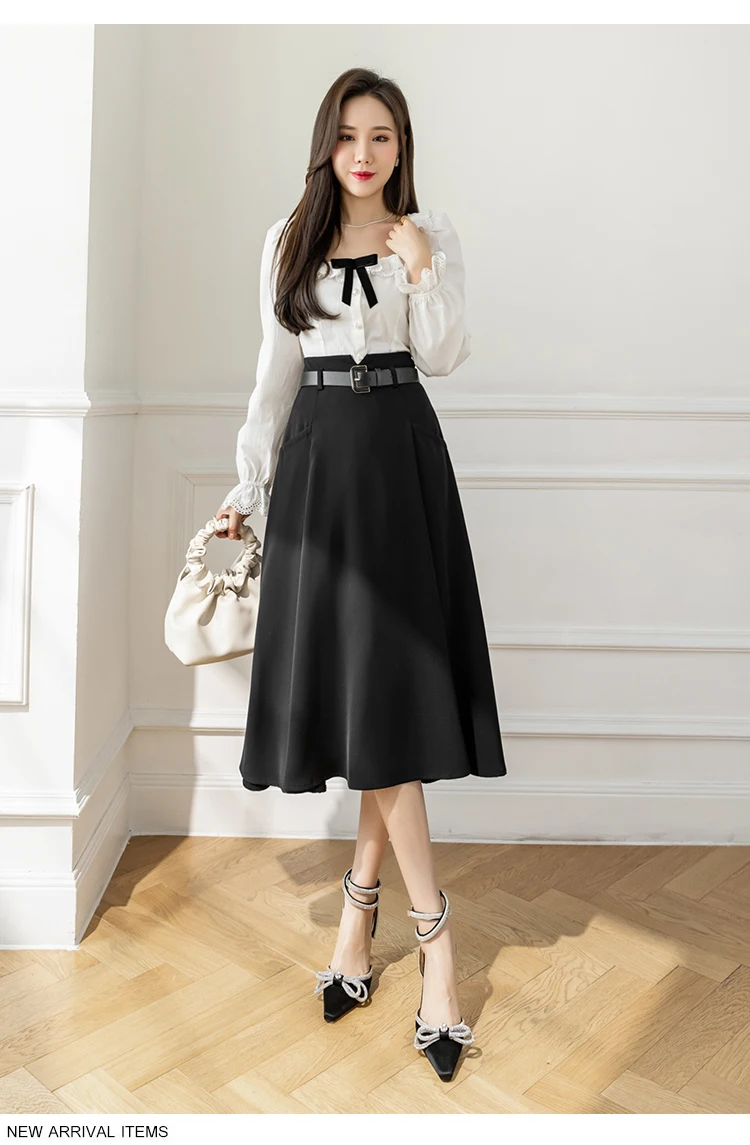 High Waist Long Women Spring Korean Style Big Swing All-match Office Lady Elegant A-line Skirt