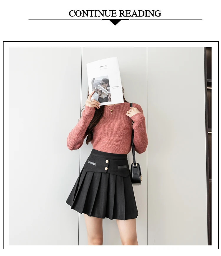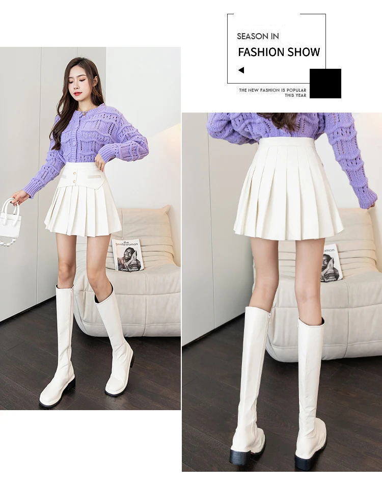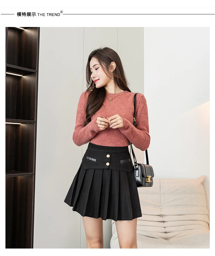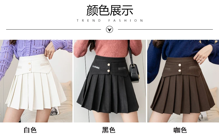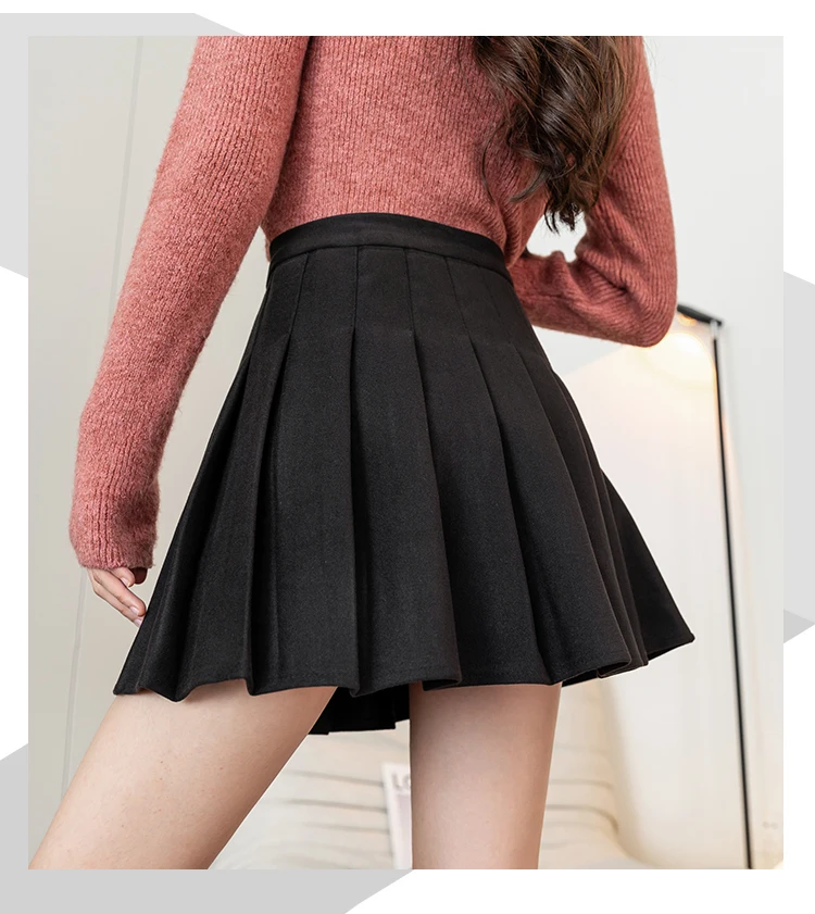 Ladies Elegant A-line Pleated Skirts Korean Style Vintage Woolen All-match High Waist Women Casual Mini Skirt