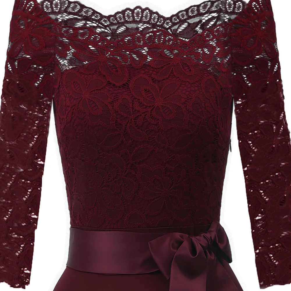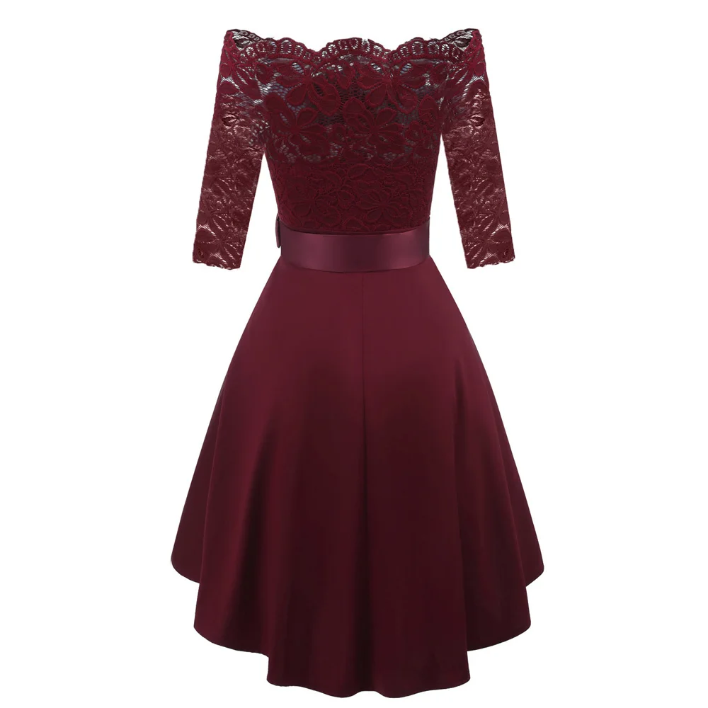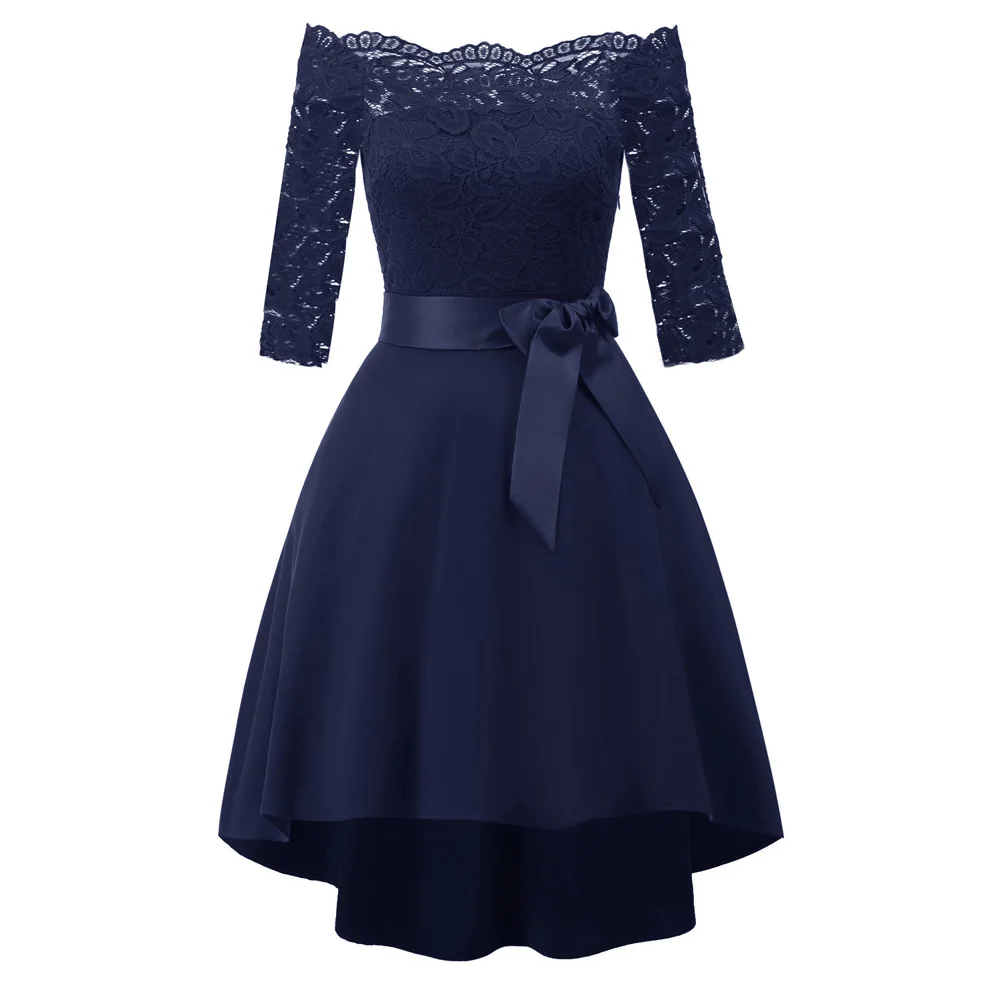 1950s Vintage Plus Size Evening Party Off Shoulder Robe High Low 3/4 Sleeve Elegant Lace Dress