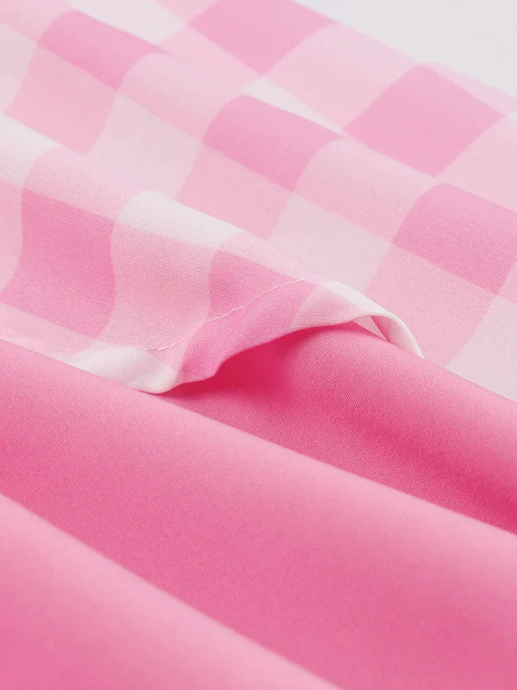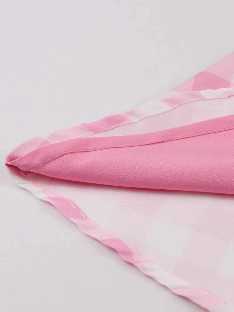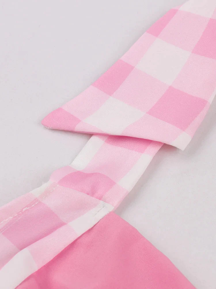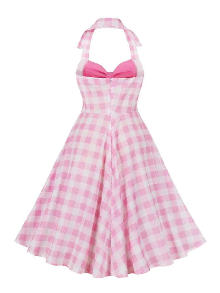 Sexy Pink Dresses for Women Halter Backless Bow Front Plaid Patchwork Prom Party Birthday Dress Midi Vintage