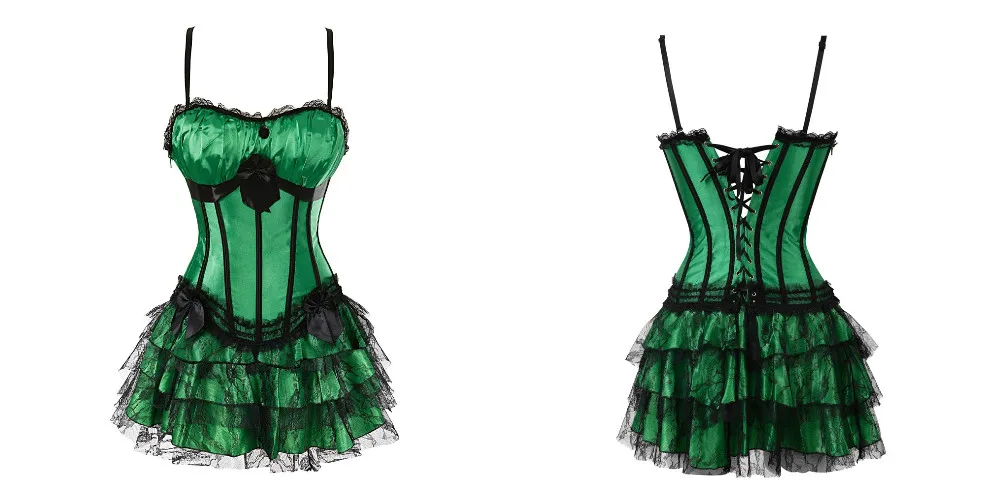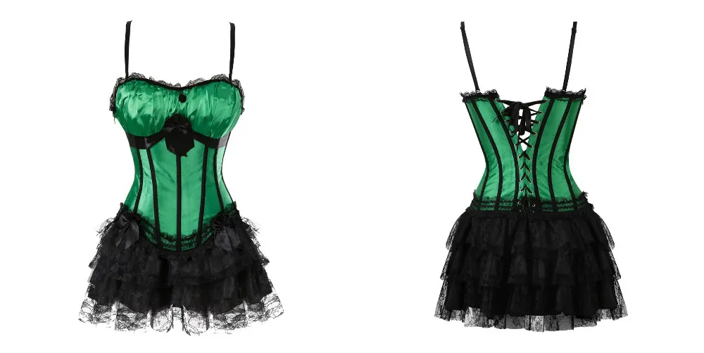 stripe green corset top with cup and mini skirt with shoulder straps bustier sexy lace lingerie Carnival dress body shaper