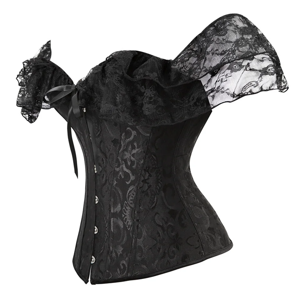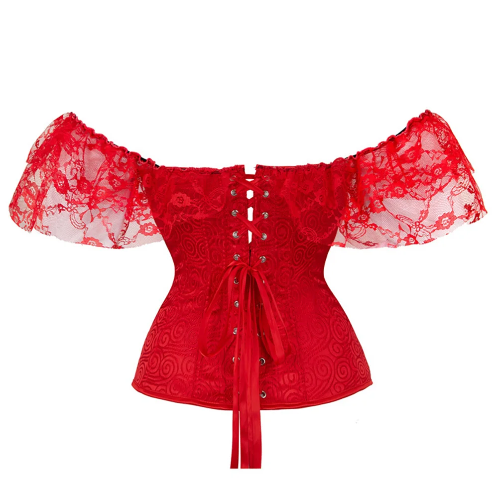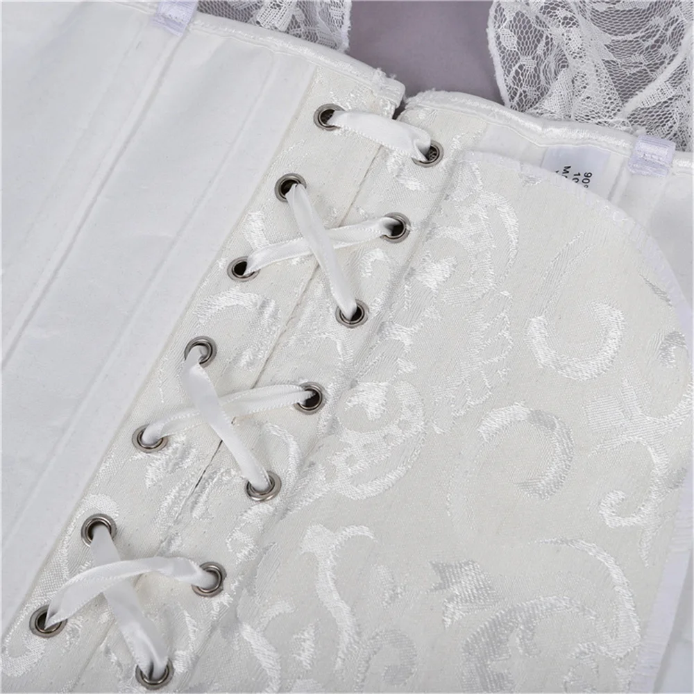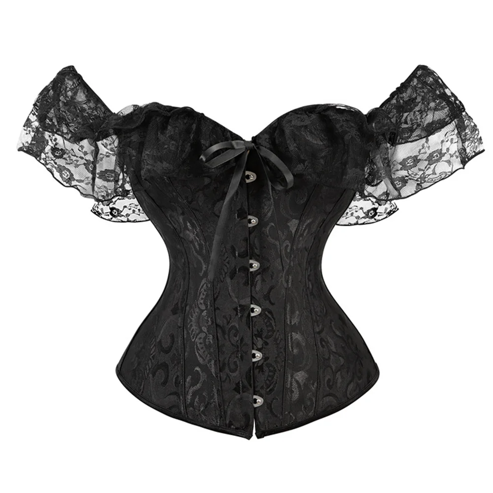 Women Bridal Short Sleeve Victorian Retro Burlesque Lace Corset and Lingerie Bustiers