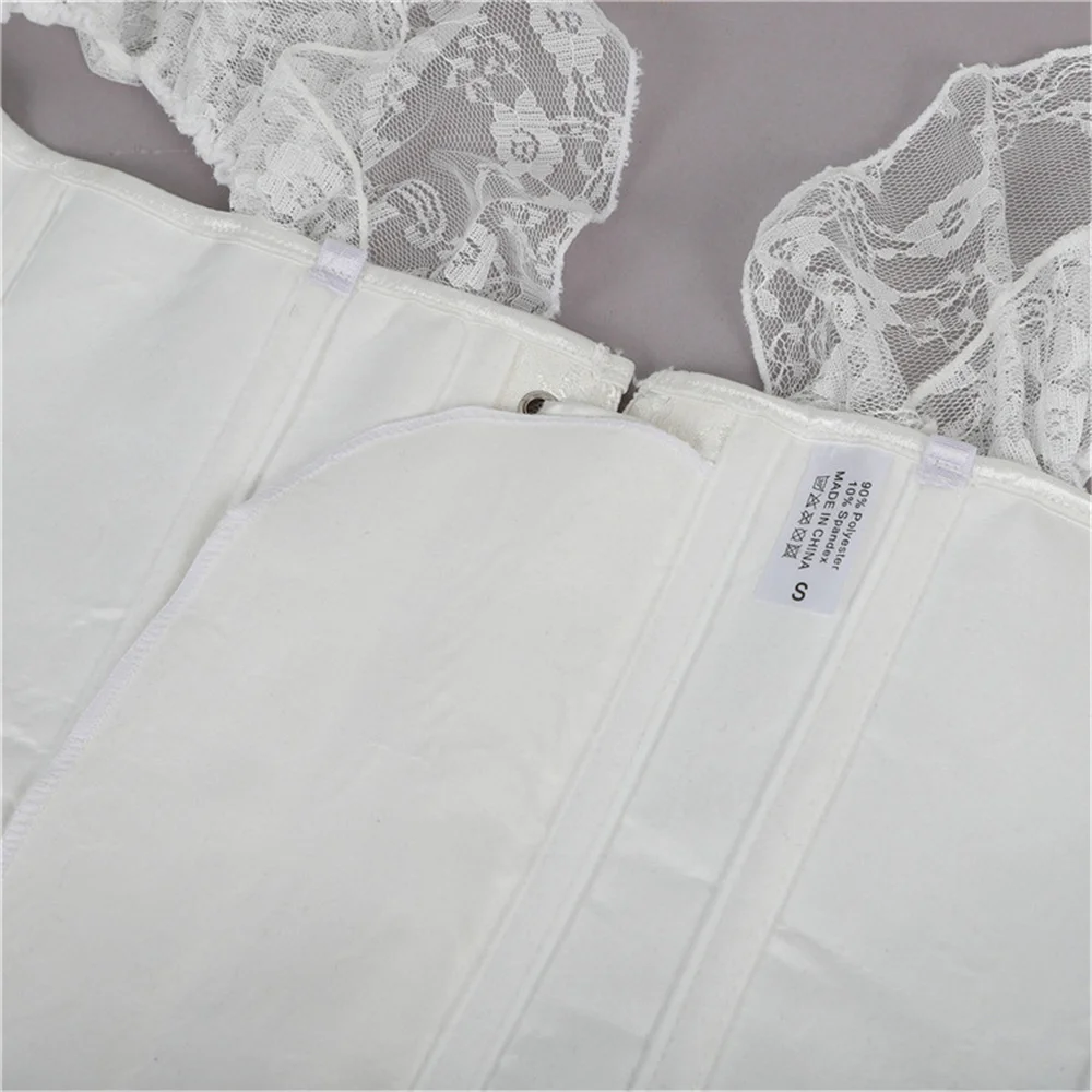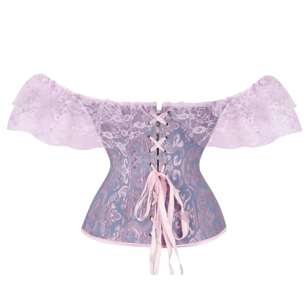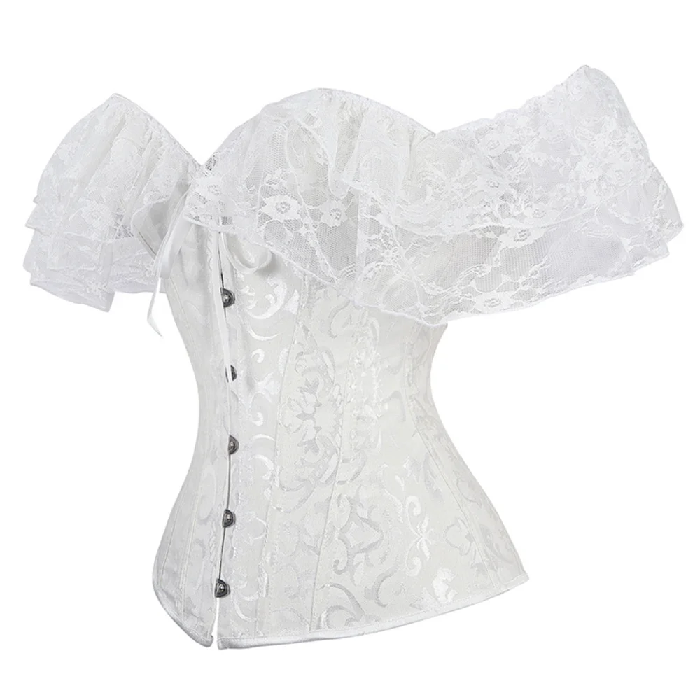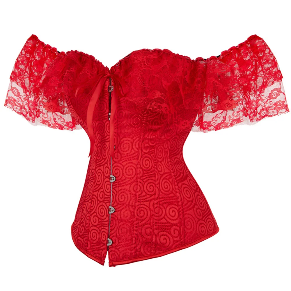 Women Bridal Short Sleeve Victorian Retro Burlesque Lace Corset and Lingerie Bustiers