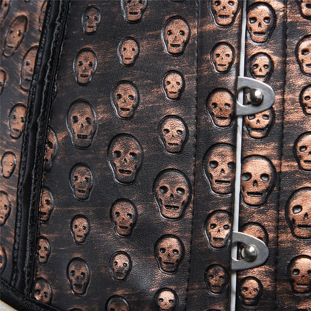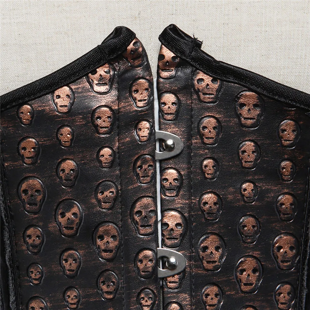 Faux Leather Steampunk Skull printed Underbust Corsets Boned Lace up Bustier Gothic Top Plus Size S-6XL