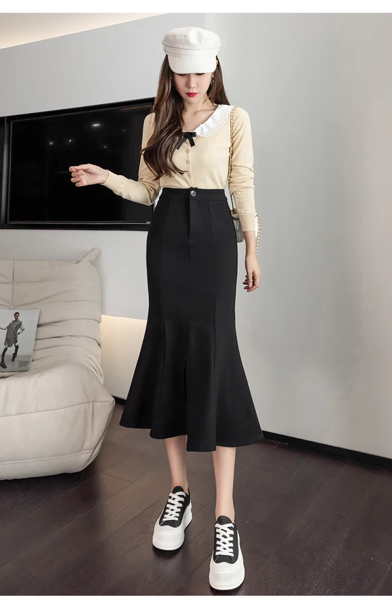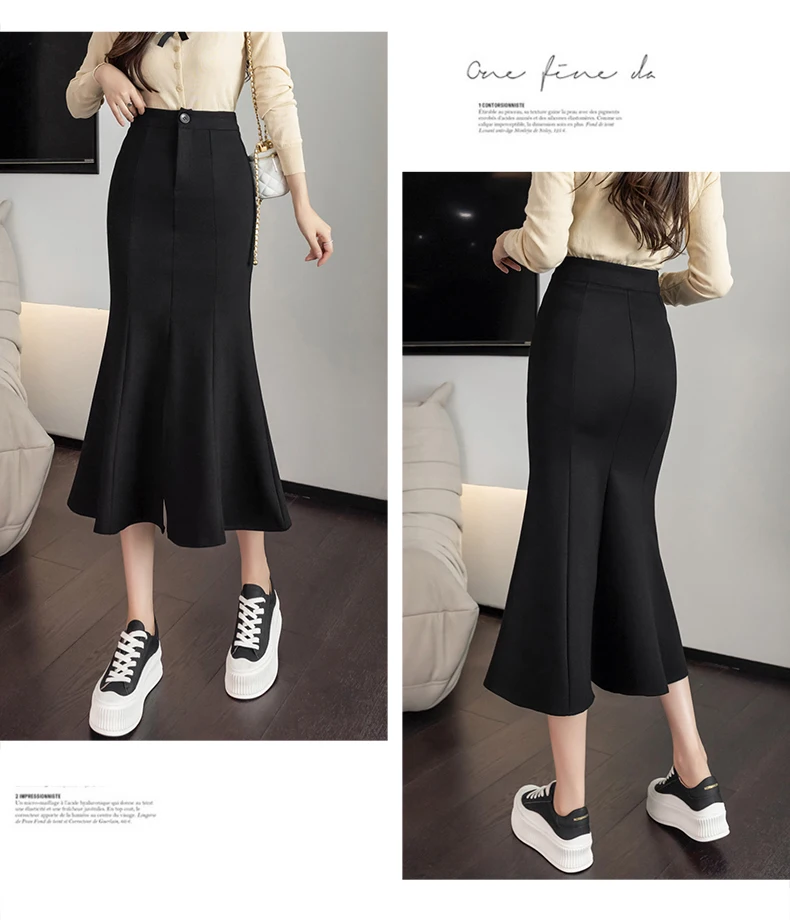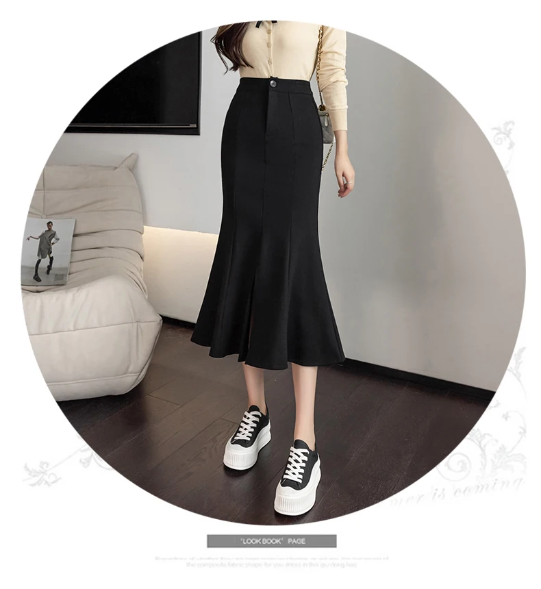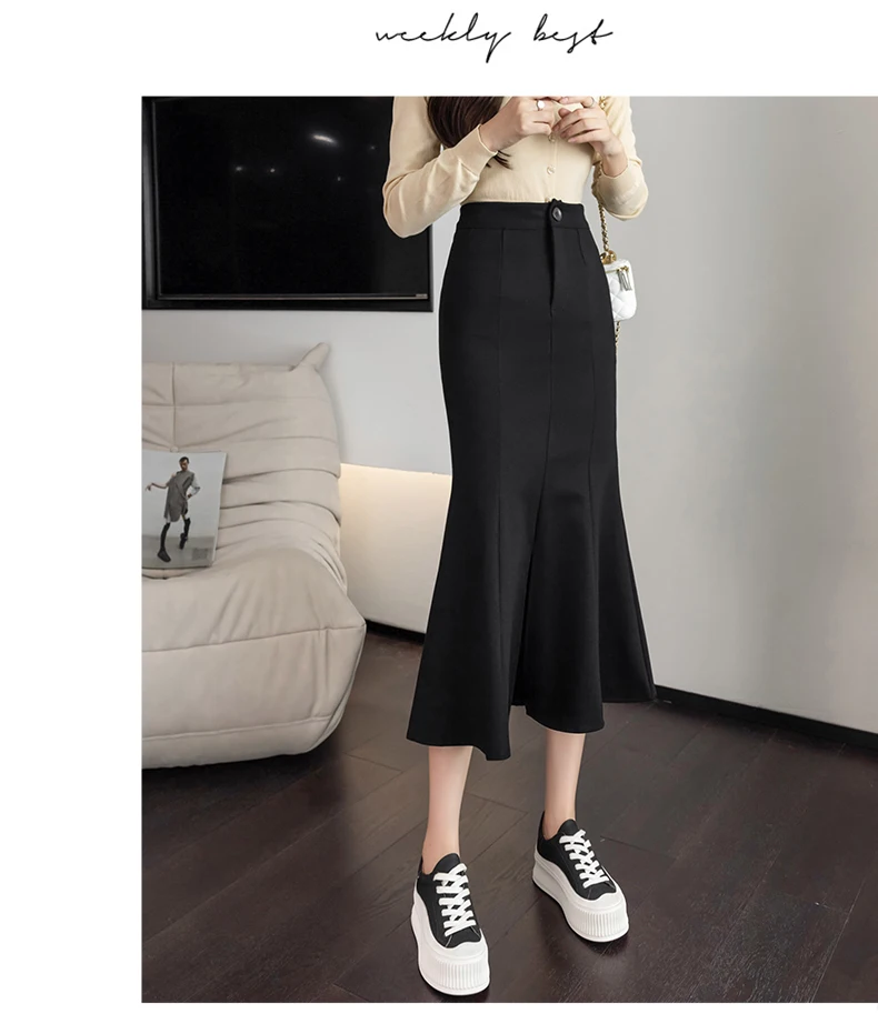 Women High Waist Mermaid Spring Korean Style All-match Black Slim Ladies Elegant Long Skirt