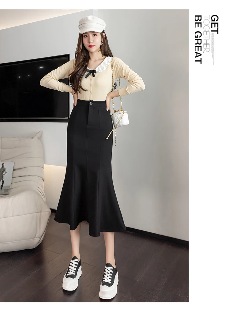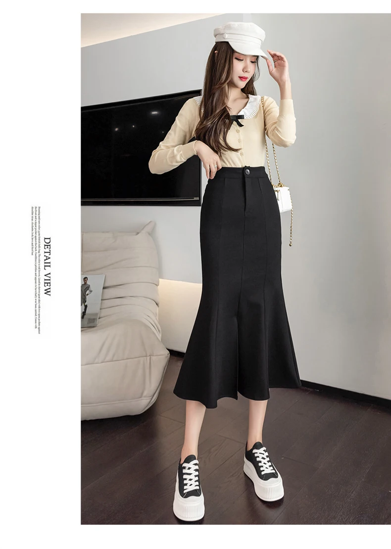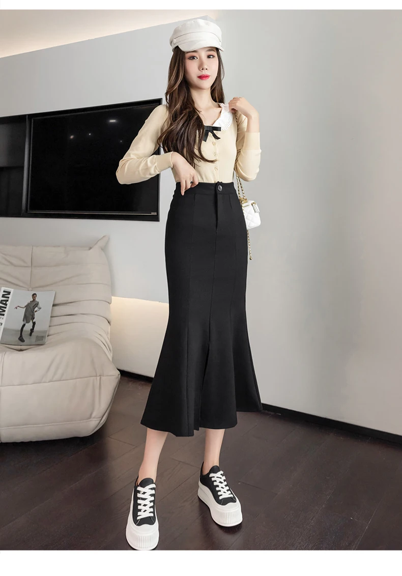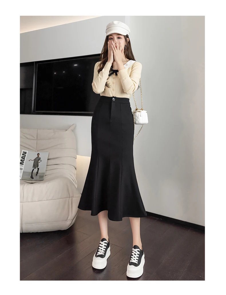 Women High Waist Mermaid Spring Korean Style All-match Black Slim Ladies Elegant Long Skirt