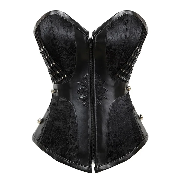 Women Overbust Corsets and Bustiers Gothic Steampunk Retro Spiral Steel Boned Zipper Lingerie Slimming Body Shaper
